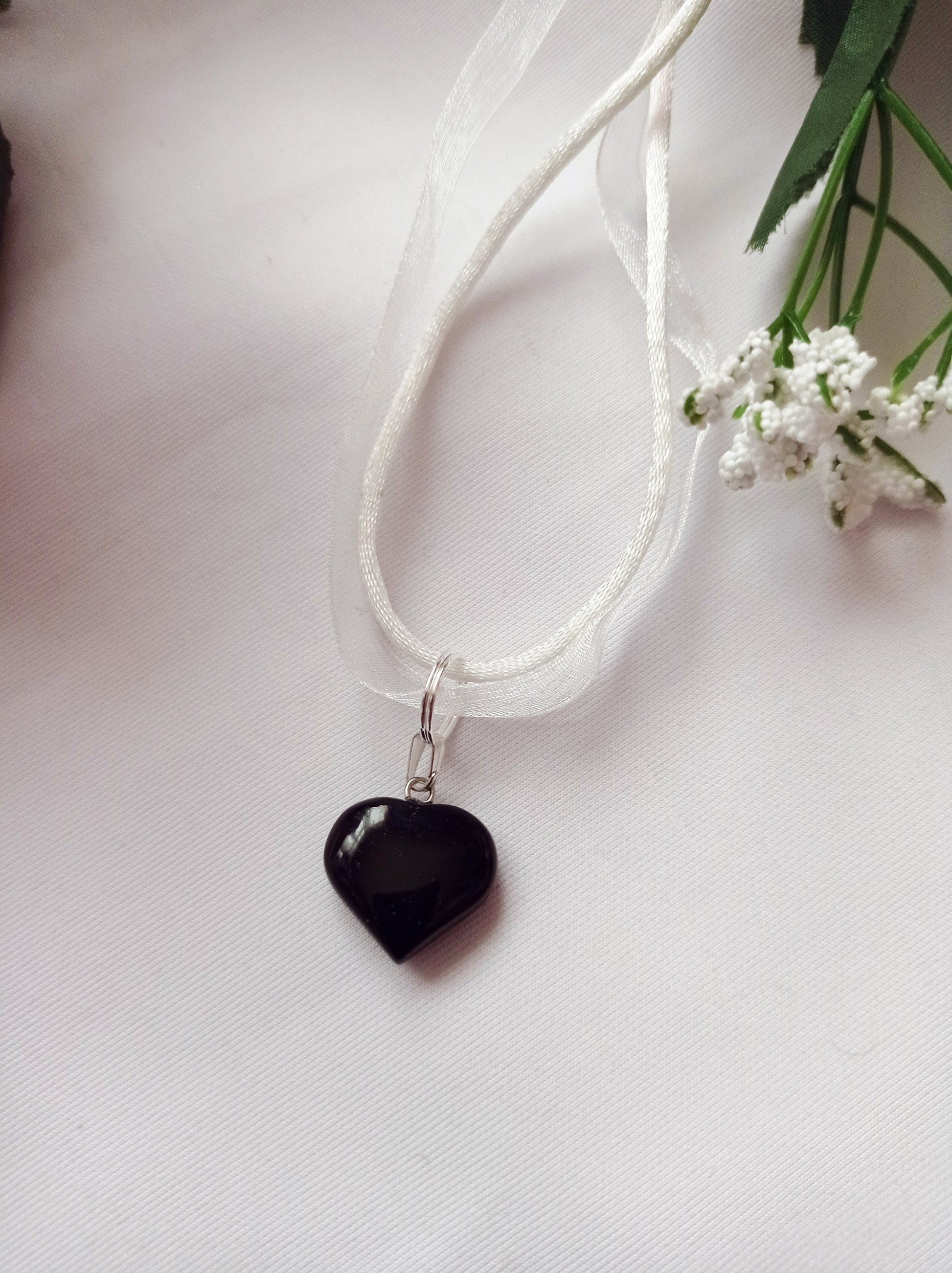 Elevate your style with nlanlaVictory's unique twist on a classic necklace. Our black onyx on white organza ribbon necklace is the perfect statement piece to add to your collection. The organza ribbon necklaces have become a signature element of nlanlaVictory style, exuding elegance and sophistication.