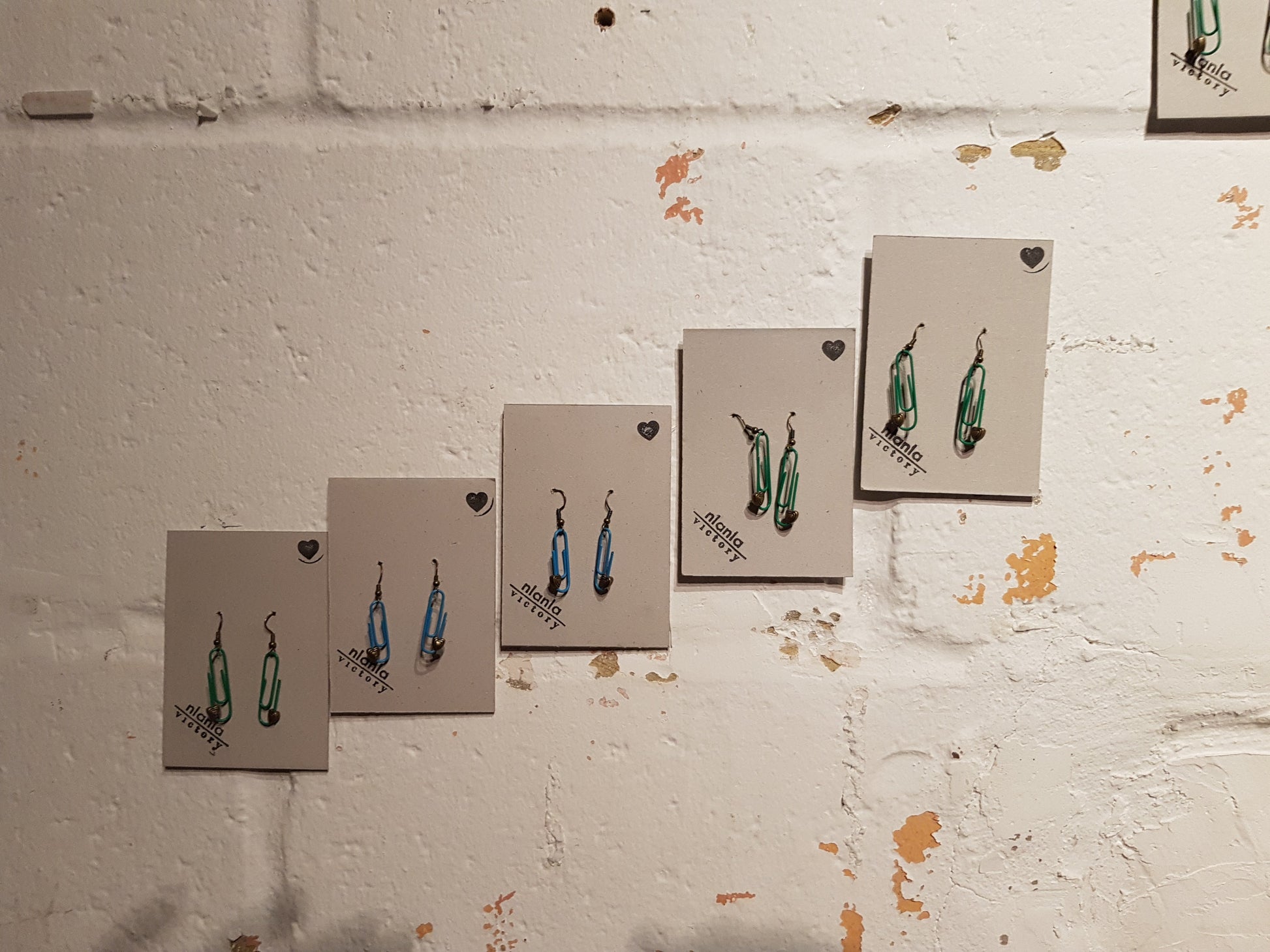 Paperclips reimagined as jewellery. The essence of colour here is in the vibrancy of the paperclip and it is unashamed to be redeveloped into something truly nlanla.